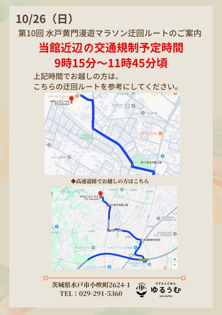 10/26(日)第10回 水戸黄門漫遊マラソンゆるうむ迂回ルートのご案内