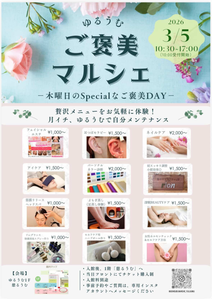 ※ゆるうむのフロントやお電話ではご予約できません。ご注意ください⚠️