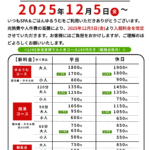 年末年始の営業時間と料金について